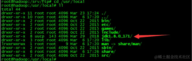 # ll //查看文件是否更名成功五、更名成功我们进行配置jdk的环境