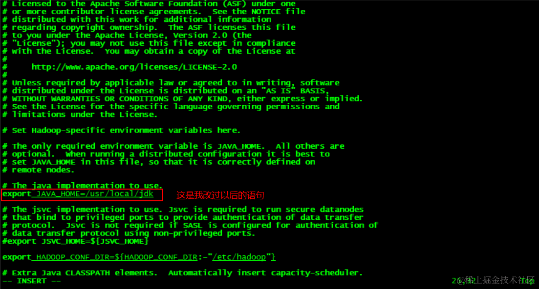 # vim hadoop-env.sh //用vim编辑器打开jdk配置文