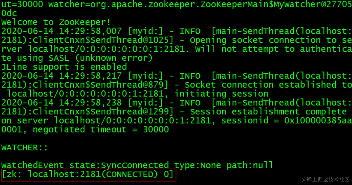 [zk: localhost:2181(CONNECTED) 0] ls / //查看根目录的文件,不过刚开始没有