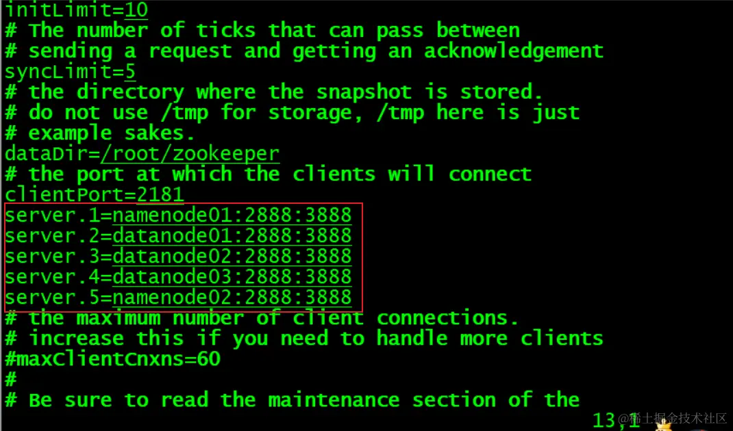 # vim /usr/local/zookeeper/conf/zoo.cfg //运用vim编辑器打开zoo.cfg