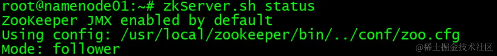 六、全部启动完成后,在使用zkServer.status目录查看状态,出现截图中的文字表示配置成功,其中有一台是leader。