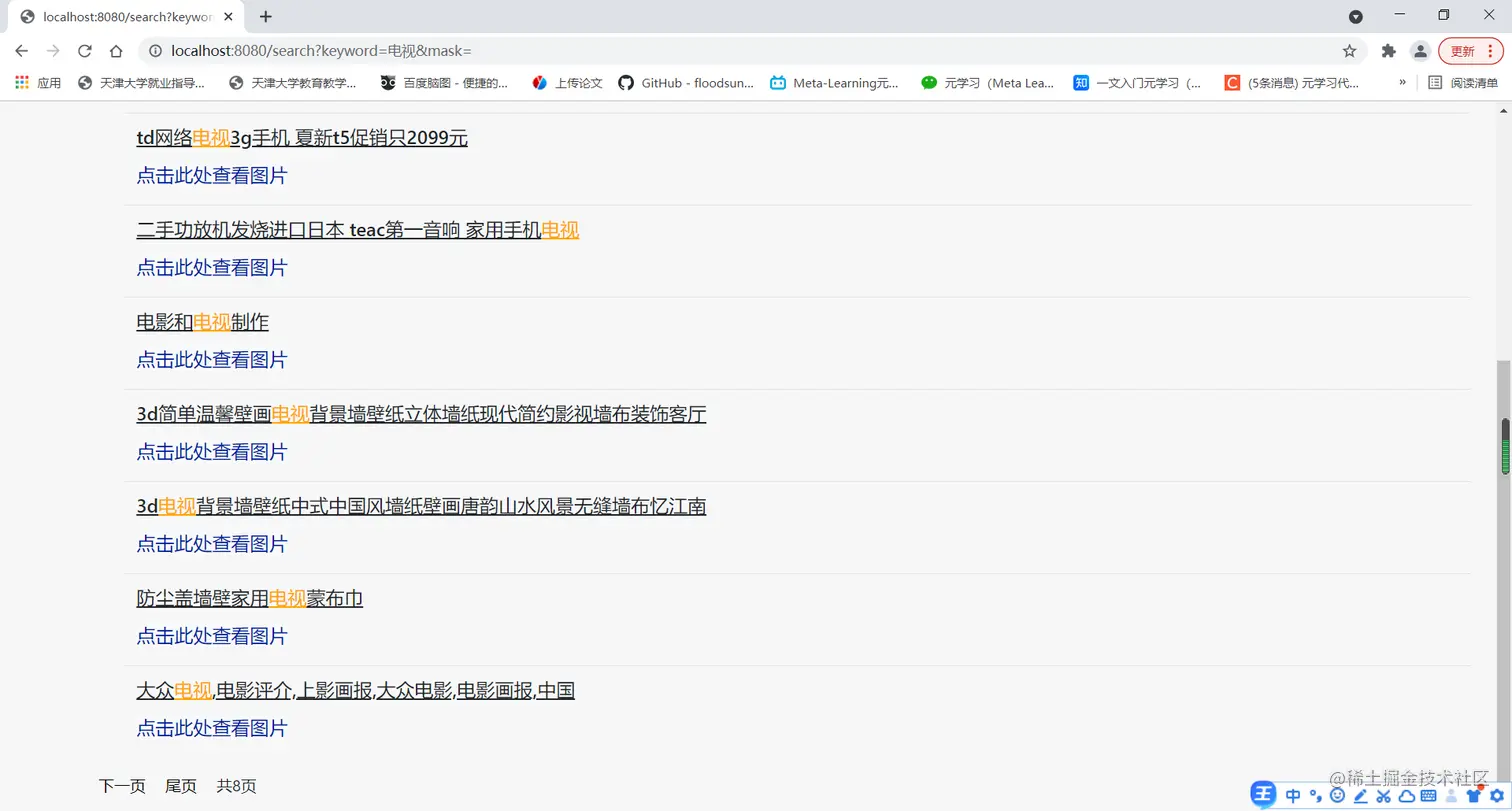 - 搜索结果按条目分页展示