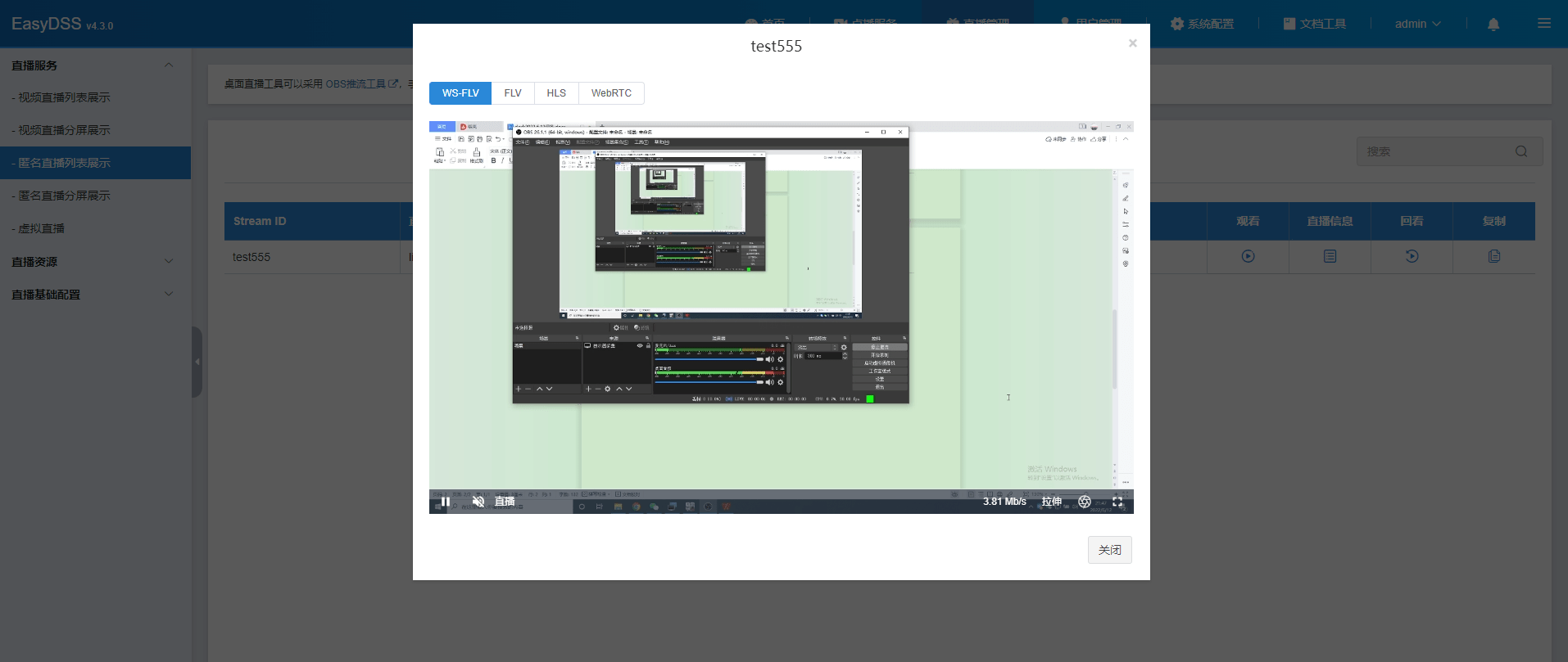 EasyDSS平台的匿名直播是一种非常简单且方便的推流直播方法,用户无需配置直播间,即能快速实现视频直播推流,灵活性较强。OBS Studio是免费开源的视频录制与直播流软件,支持Windows、macOS、Linux操作系统,在视频直播功能上,也深受用户的欢迎。今天和大家分享一个技术干货,如何使用OBS推流到EasyDSS平台实现同屏播放。