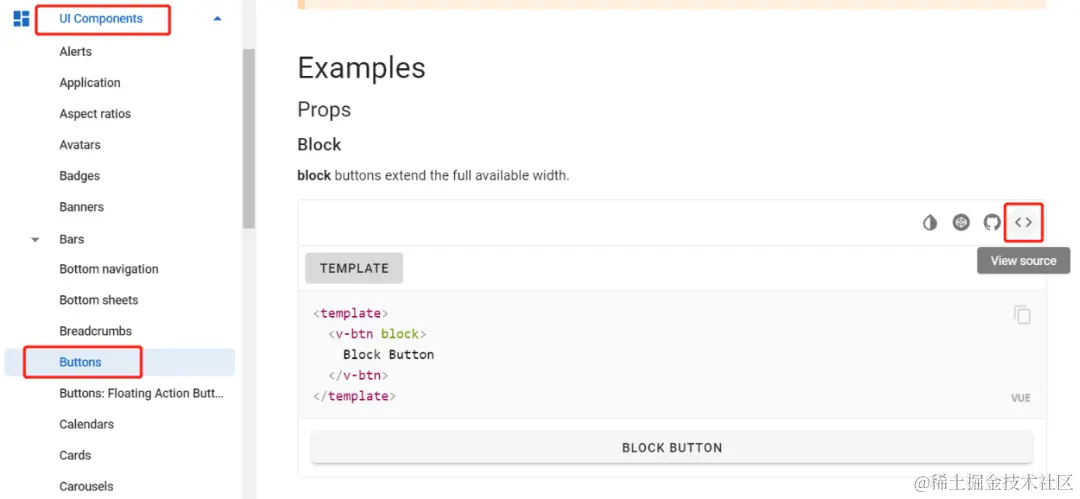 - Vuetify:vuetifyjs.com/zh-Hans/ 这里主要使用的组件库是 vuetify。 比如项目中需要一个按钮时,就可以到对用的组件下面找到它,将代码拿出来即可,里面有各式各样风格的组件:vuetifyjs.com/en/componen…