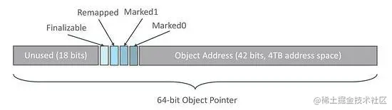 所以 ZGC 最高支持 4TB 堆和 64 位机,这样第 43-46 位就可为我们所用(实际上目前 ZGC 支持到了 16TB,这个是后话)。