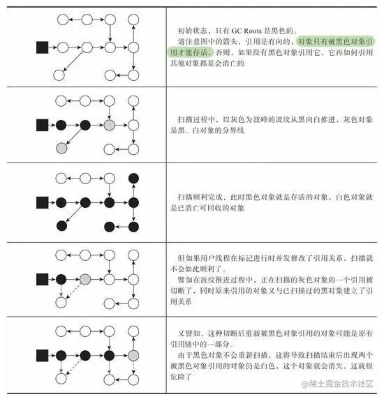 这是在并发条件下的分析,如果回收器不是并发的,而是直接发动时停能力,那就直接扫描标记,也不存在上述问题。