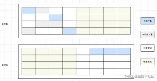 :eggplant:而整理则是把存活对象移动到一端,然后直接清除边界以外的内存区域即可。