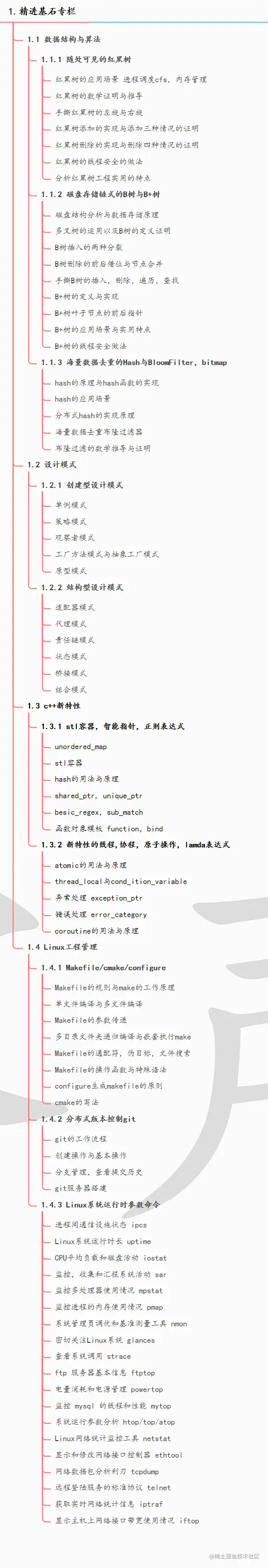 1.精进基石,分为四个方面(数据结构,设计模式,c++新特性,Linux工程管理)