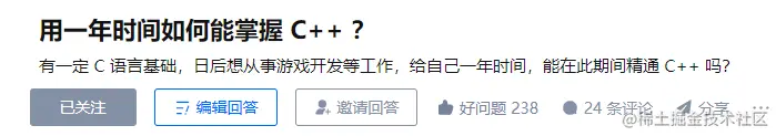 知乎上有个问题是 "如何利用一年时间掌握C++ ?" 听起来有点不可思议,一年时间能掌握C++的人,全力以赴的按计划学习,也不是没有可能。高考数学至少能考一百四吧!