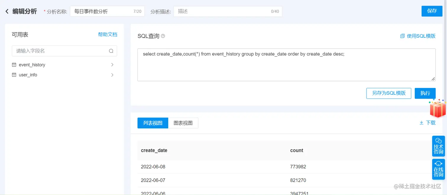 个推·智能运营提供自定义分析能力,支持更深度的数据运营需求,帮助数据分析师通过标准SQL快速查询数据,同时支持将SQL模板化,实现数据快捷查询以及查询结果自定义可视化展示。