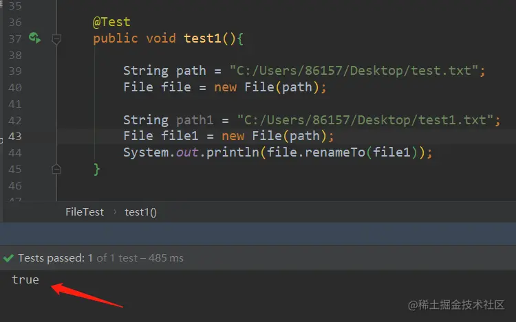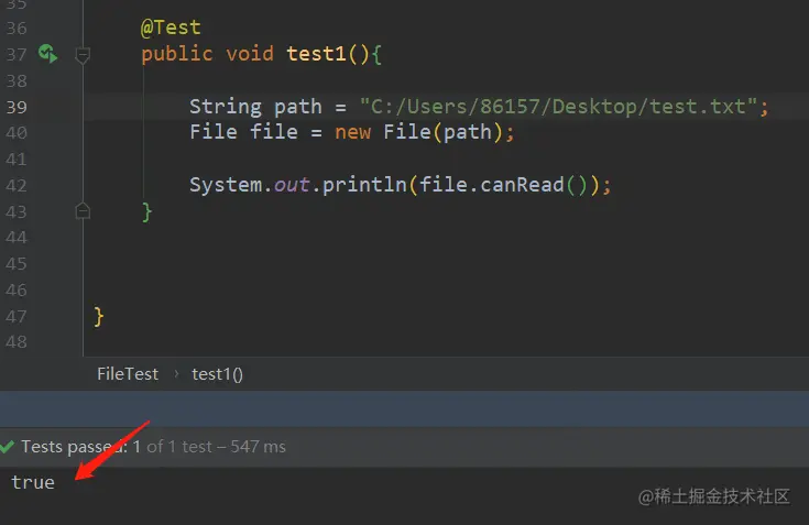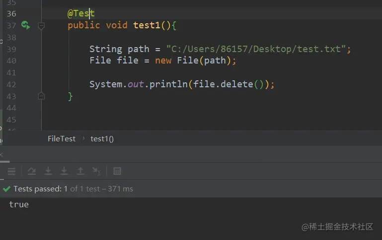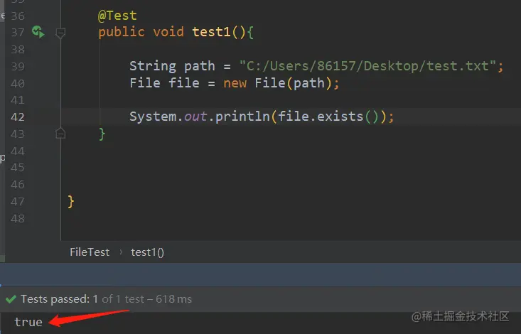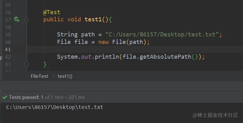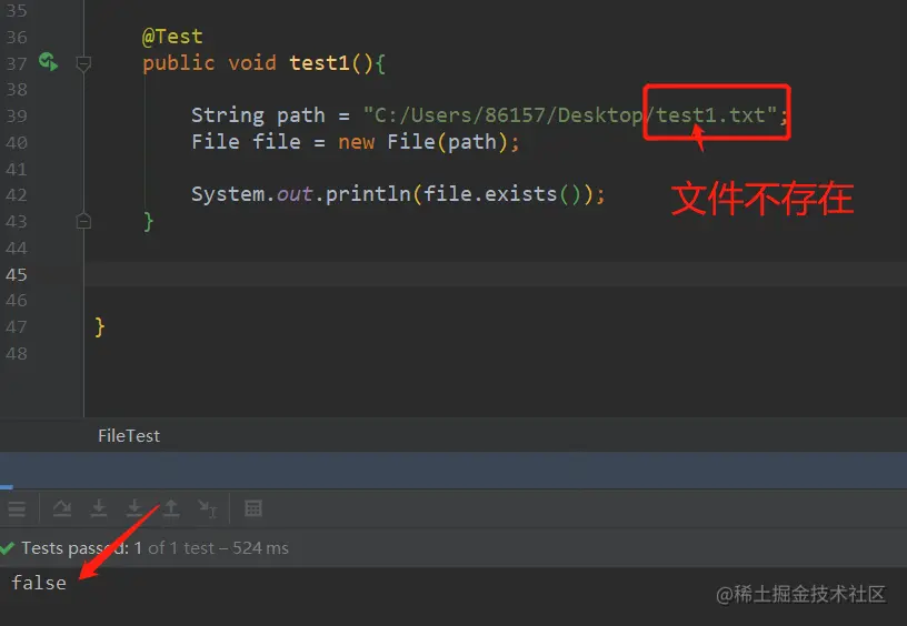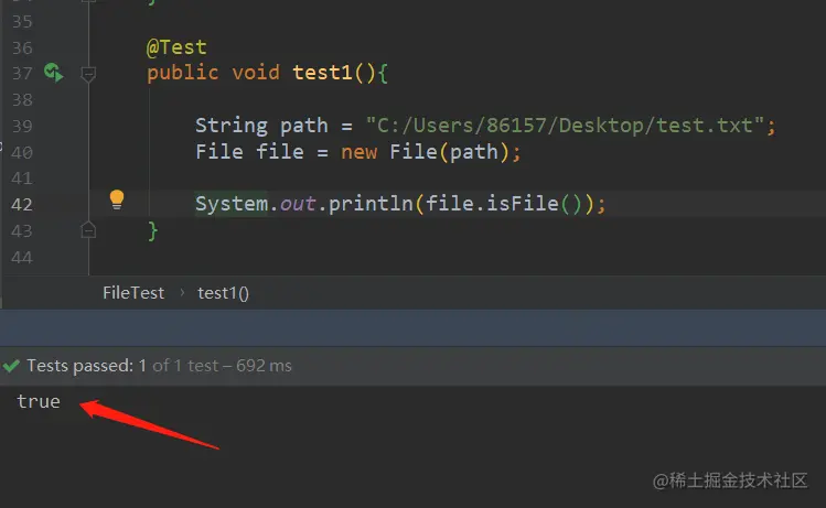 说明一下,如下所用文件测试,地址真实存在的,我是在本地桌面上创建了一个“test.txt”的文件,专门供以下方法测试。其文件路径全路径为:【C:/Users/86157/Desktop/test.txt】。