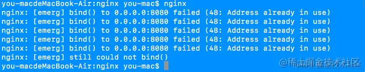 - 如果出现下图情况,不要惊慌,是因为之前nginx被启动过了