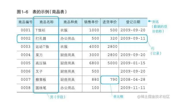数据库中存储的表结构类似于excel中的行和列,在数据库中,行称为记录,它相当于一条记录,列称为字段,它代表了表中存储的数据项目。