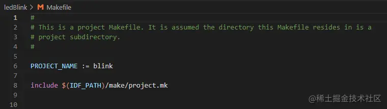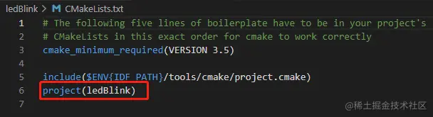 CMakeLists.txt文件,工程名称改为ledBlink Makefile可不修改,为旧版GNU Make编译,Cmake由CMakeLists.txt控制idf.py flash编译前先idf.py fullclean清空一下- 删除