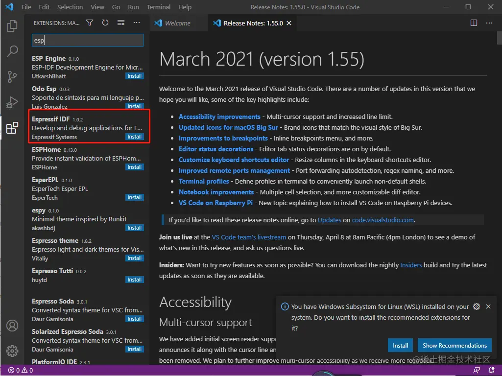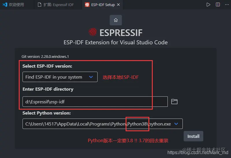 一、安装Espressif IDF插件