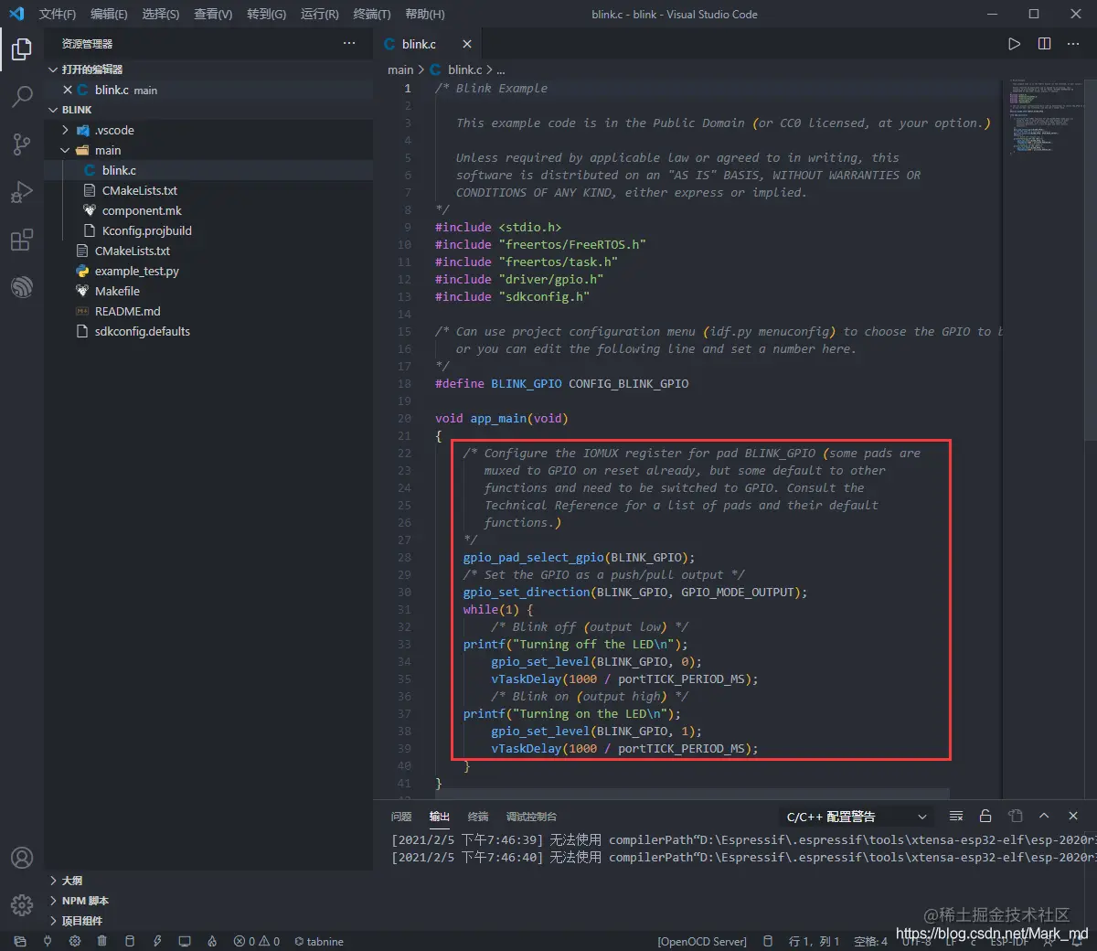 • 参考:乐鑫ESP32开发 1.Vscode创建新工程,编译,下载烧录,监视端口,点亮一个LED