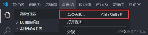 - 在 VS Code 中点击查看 - 命令面板(或者