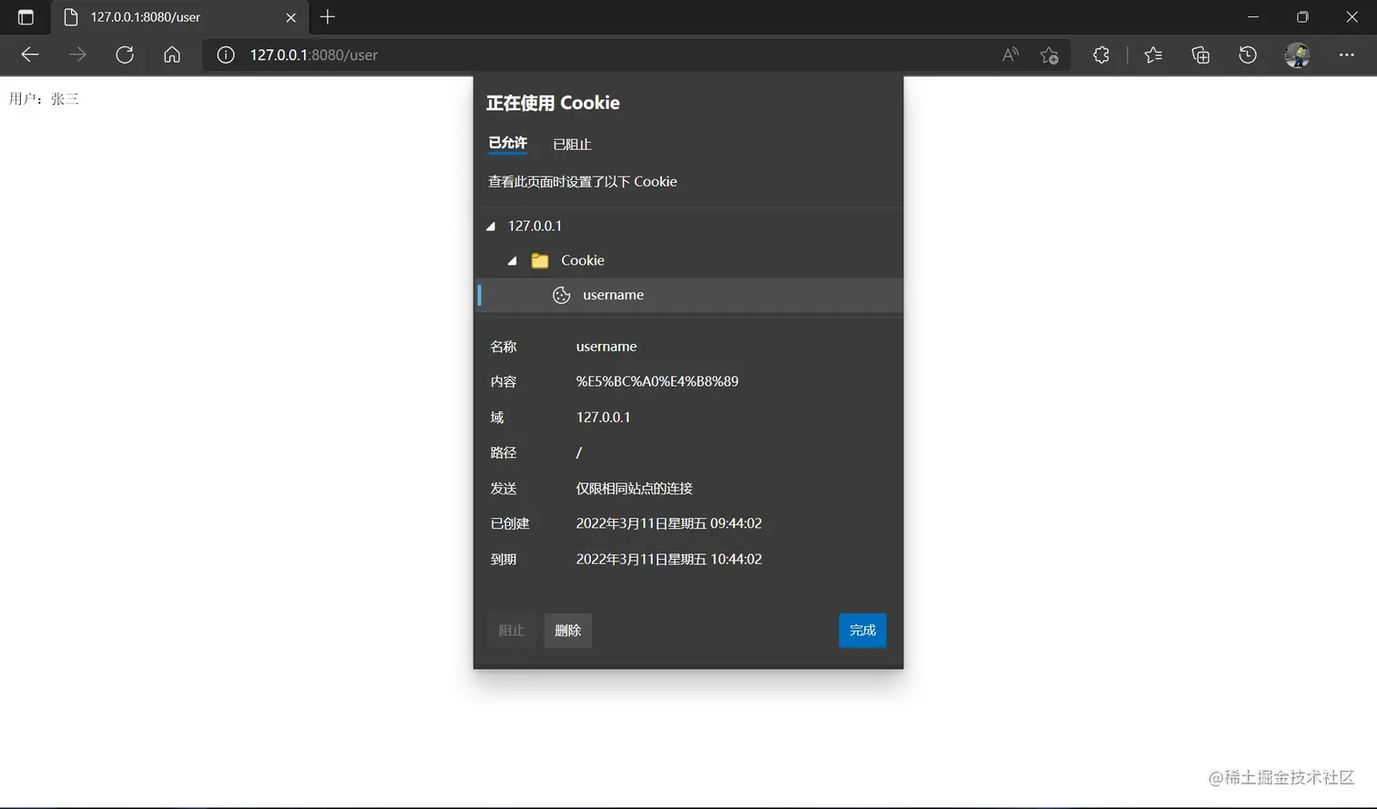 con.SetCookie("username", "张三", 3600, "/", "127.0.0.1", false, true)
