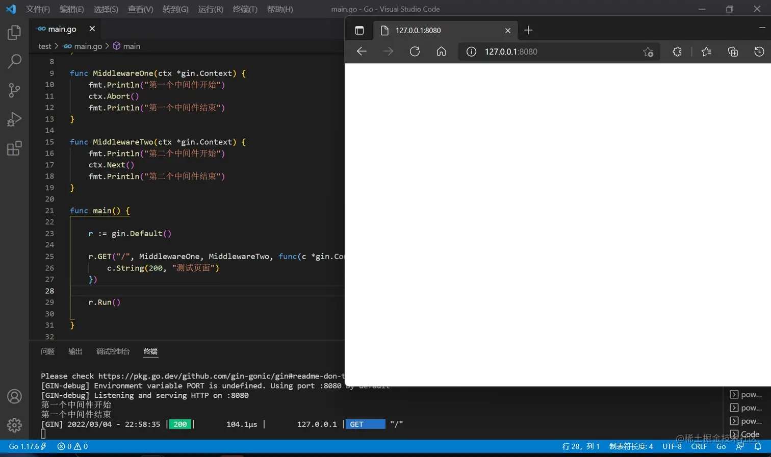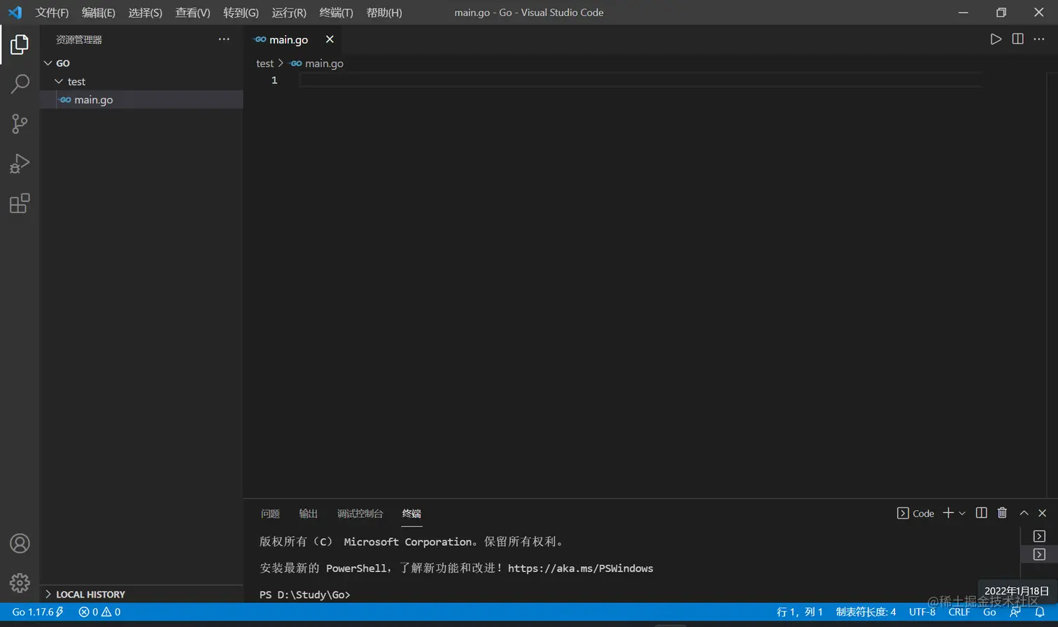 新建 test 文件夹,并在其中新建一个 main.go