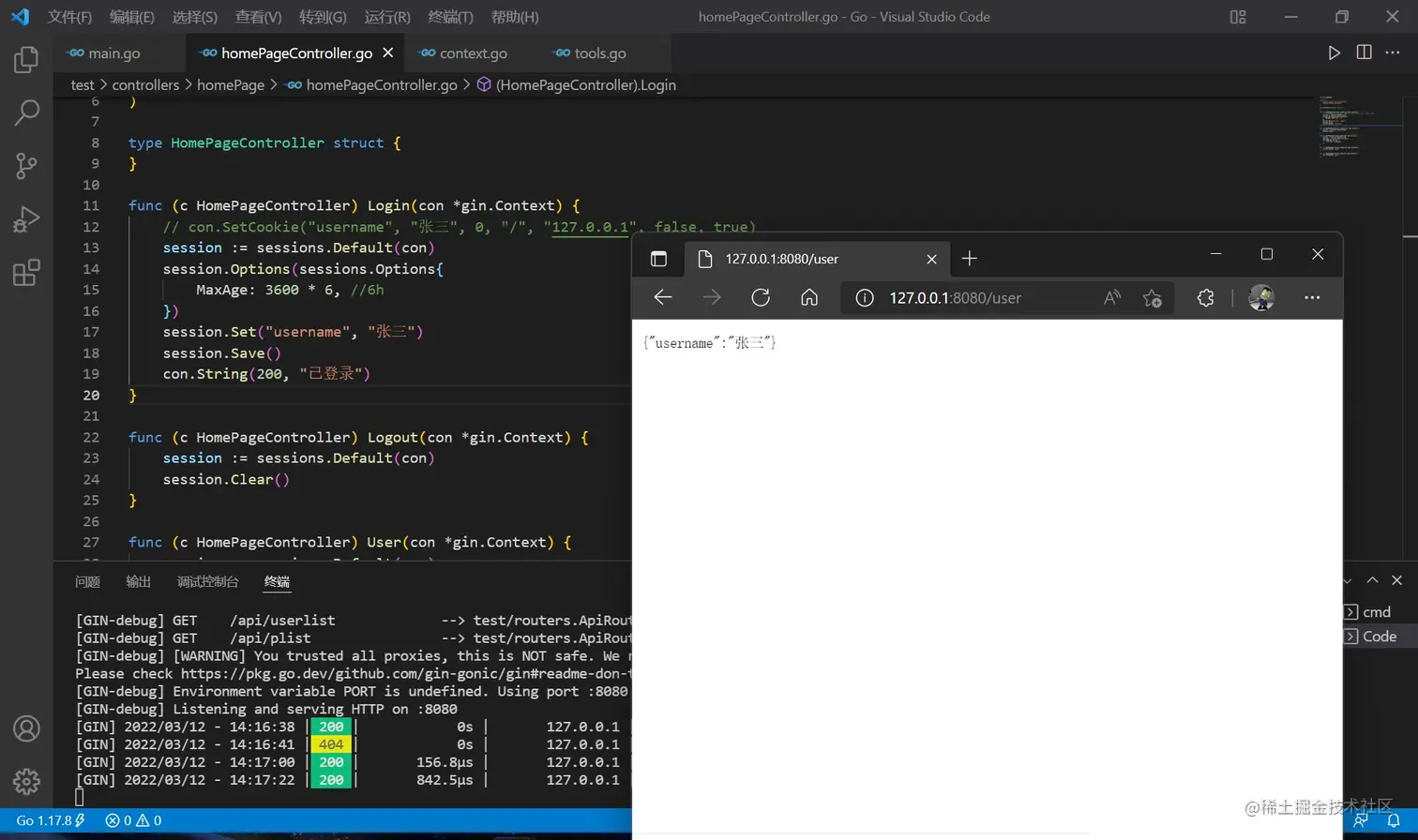 gin是不集成session的,只能用第三方的