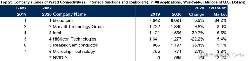 在 Wired Connectivity(有线网络连接)领域,博通与 Marvell 和英特尔的市场份额排在前三(@Gartner)总之,这笔交易,代表了博通在无线通信技术中的 " 硬 " 与 " 软 " 的结合。另外,混合云生态圈的不少资深分析师也指出,2018 年和 2019 年,在博通连续以总价超过 300 亿美元收购 CA Technologies 和赛门铁克之后,博通软件业务占比已经上升到 25%,一旦收购 VMware,这个数字将会飙升到 49.5%,可以说,博通在 " 另一个 IBM" 路线上越走越远,越来越不像个纯粹的半导体 fabless。