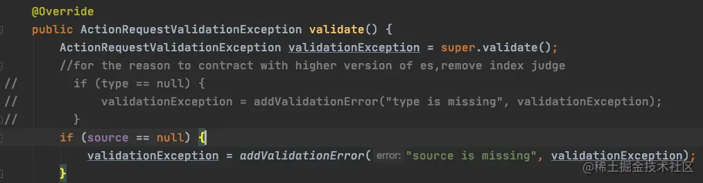 最后还需要在查询校验的时候去掉对于type的校验,防止高版本的es如es7及以上版本只会返回报错,具体做法是将IndexRequest中的相关校验注释掉。