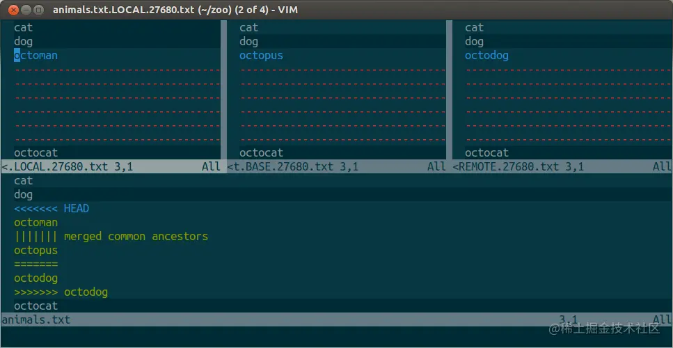 Git 冲突解决vimdiff