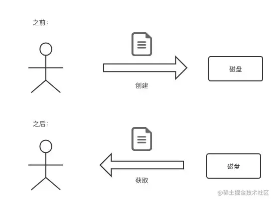 你在你的电脑上创建了个文件,然后写了点东西进去。然后你 N 天后打开电脑,看到这个文件还在(废话)。这实际上就是数据被持久化进了磁盘,下次需要文件时再从磁盘中取出来。