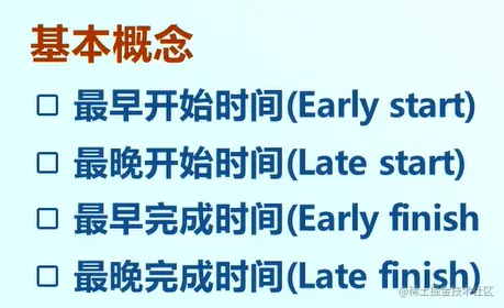 - 确定项目的开始时间,网络图中第一个任务的最早开始时间是项目的开始时间;