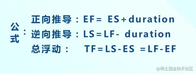 翻译其中一条:EF(最晚结束时间)=ES(最早开始时间)+duration(历时)