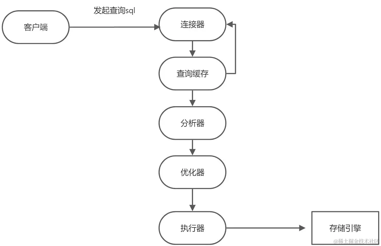连接器 -> 缓存 -> 分析器 -> 优化器 -> 执行器