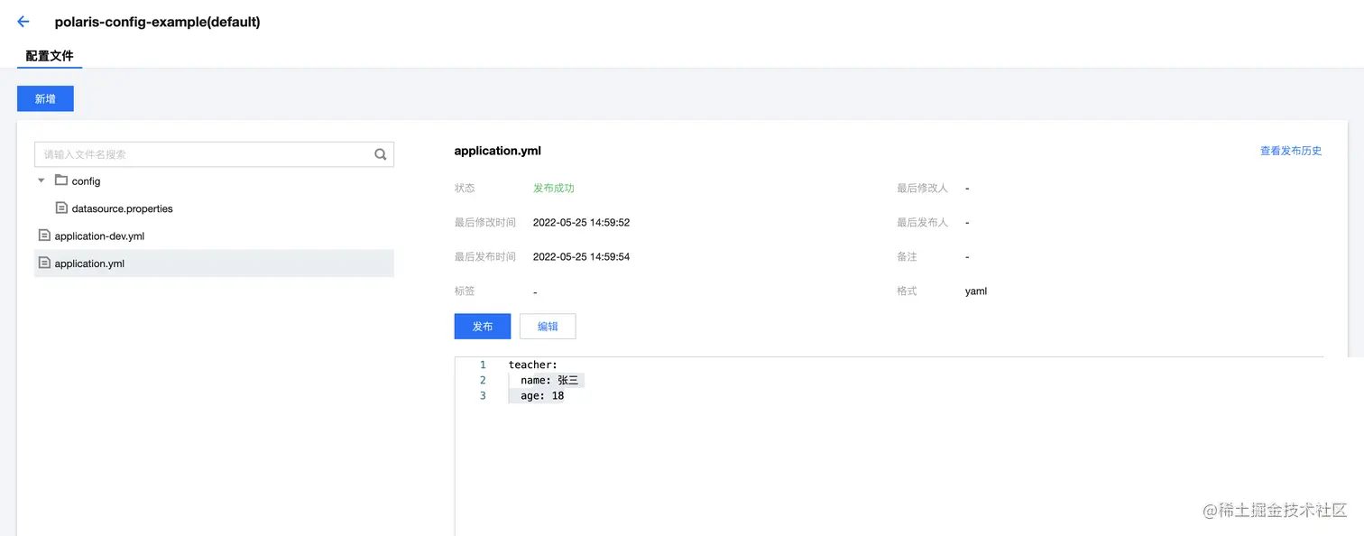 把 polaris-config-example 应用的配置文件都放在polaris-config-example 分组下,这样便于配置管理。