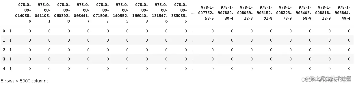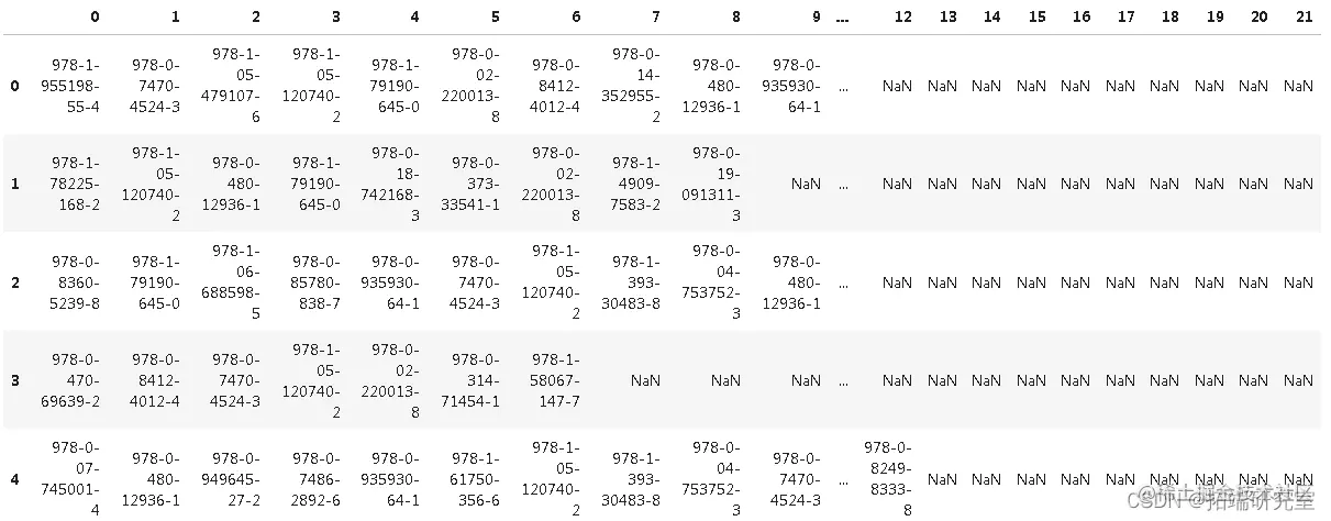 这是为了帮助理解一个非常简单的数据集,其中包含单个国际标准书号 (ISBN),它是一本书的唯一国际出版商标识符号。每行代表购买了所列书籍的唯一客户。