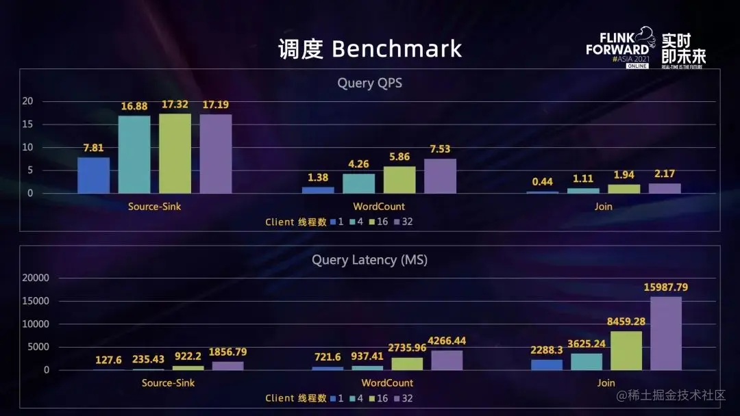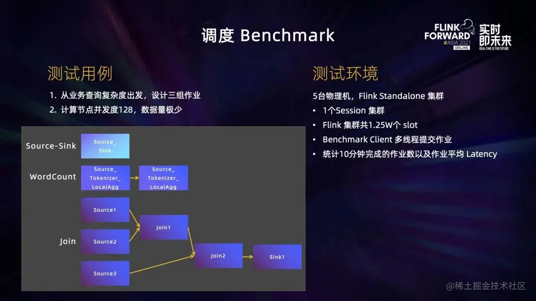 为了测试 Flink 执行 OLAP 计算的能力,我们对 Flink 作业调度进行 Benchmark 测试:
