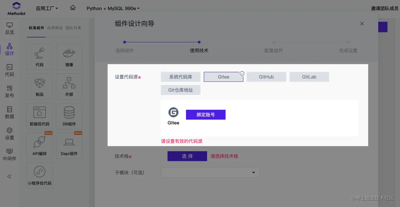 想要一站式发布应用,编码环节是必不可少的,目前 Methodot 已经拥有了 Gitee 的代码源集成能力,你可以在构建应用时选择在 Gitee 的代码仓库作为代码源了,那么具体该如何操作呢?