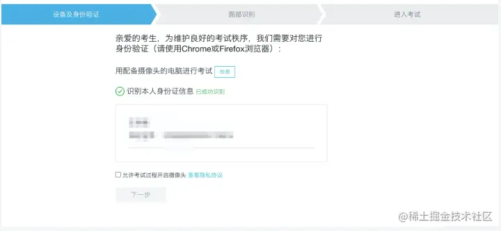 ACP线上考试:需要独立封闭的空间,保证无他人在场的情况下考试。考试系统会调用你的电脑摄像头,根据你的身份证原件进行人脸识别,通过后才能考试。考试期间也要保证你在摄像头的视野之内。