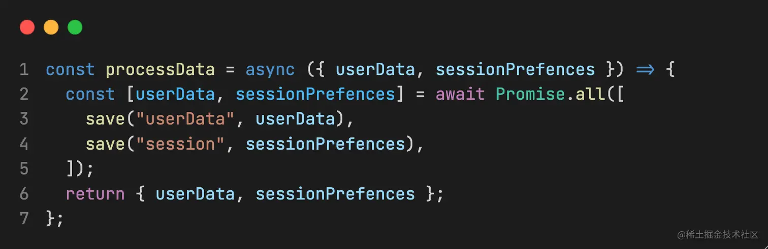 const processData = ({ userData, sessionPrefences }) => Promise.all([