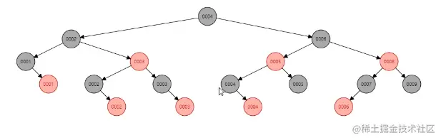 红黑树的结构是根据hash值进行比较的,小于中间节点的在左侧,大于中间节点的在右侧,直到对比出等于某个节点时表明找到该元素。
