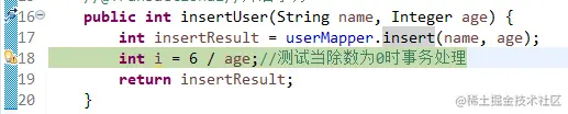 此时发现,与不使用事务时的情况不同,使用事务时,并没有在执行insert方法之后,立即保存到数据库中。然后继续f6向下执行: