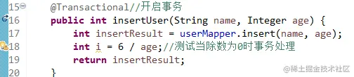 数据最终也没能保存。说明在使用事务注解时,该方法中出现异常时,数据就不会保存到数据库中。