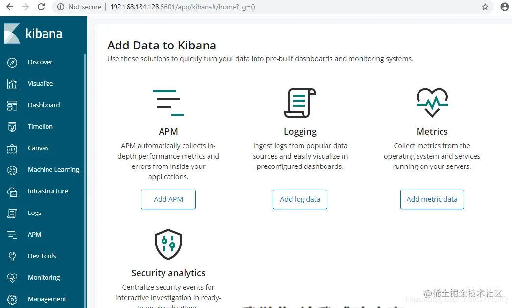 启动成功后访问5601端口:
