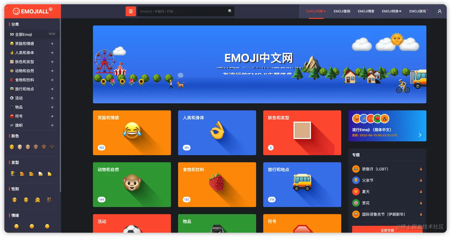 首先是 Emoji 中文网,这里不仅提供了各个 Emoji 表情符号的含义,是一个全面的 Emoji 字典。除此之外,还支持各种赋值粘贴各种表情符号,更有 Emoji 游戏等你来玩!