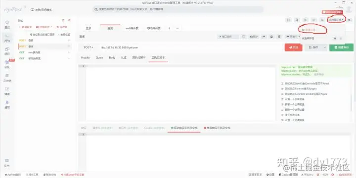 随着web技术的发展,特别是前后端分离的架构主键成为主流,我们后端程序员调试的时候不再依赖页面去操作,而是直接调试接口。对于没有权限控制的GET接口而言,这是一个非常轻松的工作,但是对于有权限的或者使用了其他方法(POST,PUT,DELETE等)的Rest接口,事情就不那么美好了,还好有apipost这个神器能够帮我们解决这些问题,基本的使用我就不讲了,这一块网上的教程很多。这里主要提一些相对来说比较高级的用法。