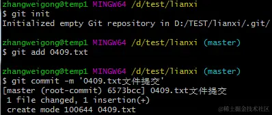 使用下列的命令,将创建的文件添加到暂存区,然后提交到仓库: