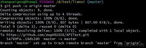 之后,只要本地做了修改提交,就可以使用git push origin master命令进行文件推送。