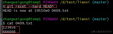git reset --hard HEAD^:回退到上一个版本