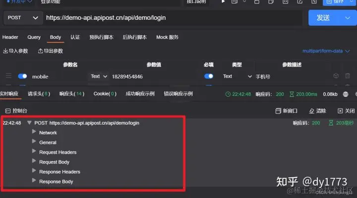 在控制台中我们可以查看接口请求的完整信息,后面的演示中我们会多次使用到控制台。