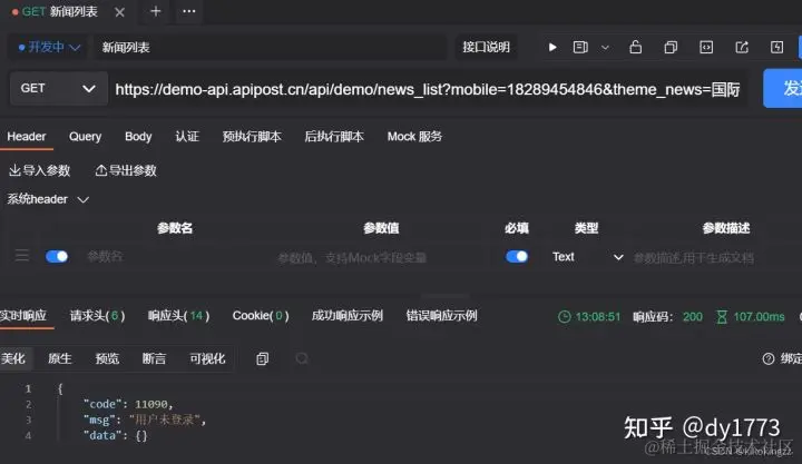 1.如下新闻列表接口,在没有传入token参数之后,直接请求该接口会提示用户未登录。