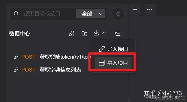 2.在Apipost的API列表区中右键选择 导入项目。