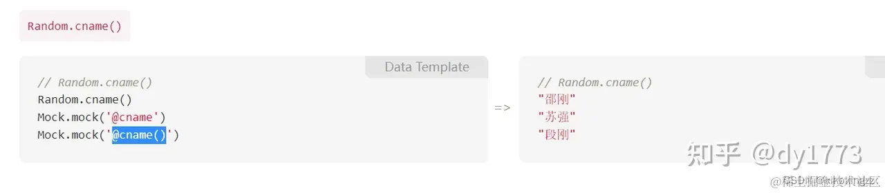 如果内置Mock变量不满足需求,也可以点击更多Mock.js文档的按钮,查看你所想要的Mock函数。比如要生成随机的姓名,就可以直接复制上面的@cname() 方法即可。